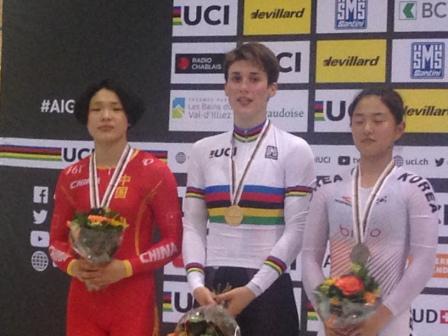 In 34,023 Sekunden verwies Pauline Grabosch die Chinesin Yufang Guo (34,571) und die Koreanerin Soohyun Kim (34,710) auf die Plätze zwei und drei und holte sich schon ihren dritten WM-Titel. Im Vorjahr hatte die 18-Jährige in Kasachstan ebenfalls das Zeitfahren und zusammen mit Emma Hinze den Teamsprint gewonnen.